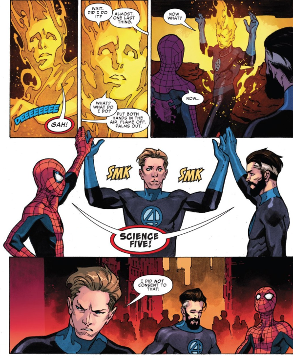 - Friendly Neighborhood Spider-Man Vol 2 #13 - "Science five!" "I did not consent to that."