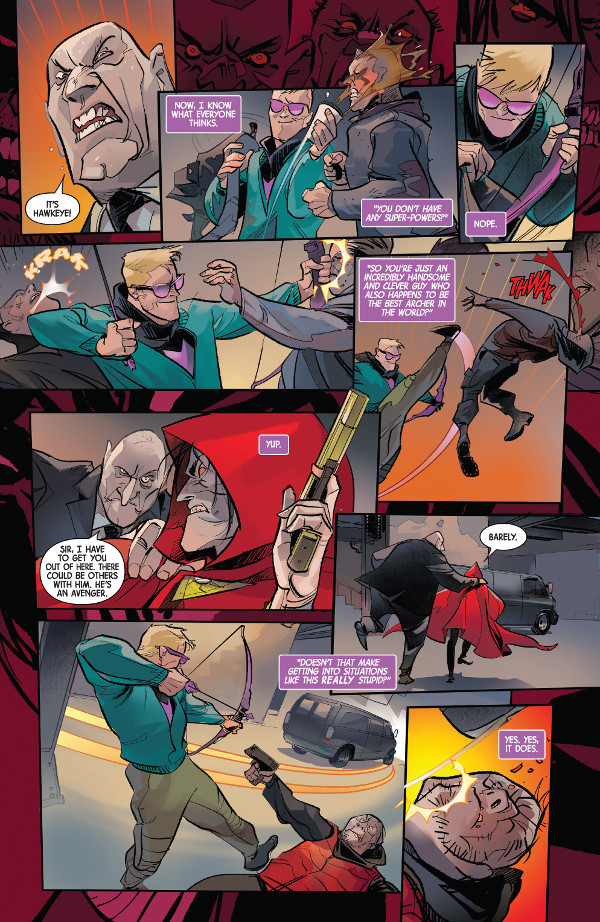 - Hawkeye: Freefall #1 - "Now I know what everyone thinks. 'You don't have any super-powers?' Nope. 'So you're just an incredibly handsome and clever guy who also happens to be the best archer in the world?' Yup."